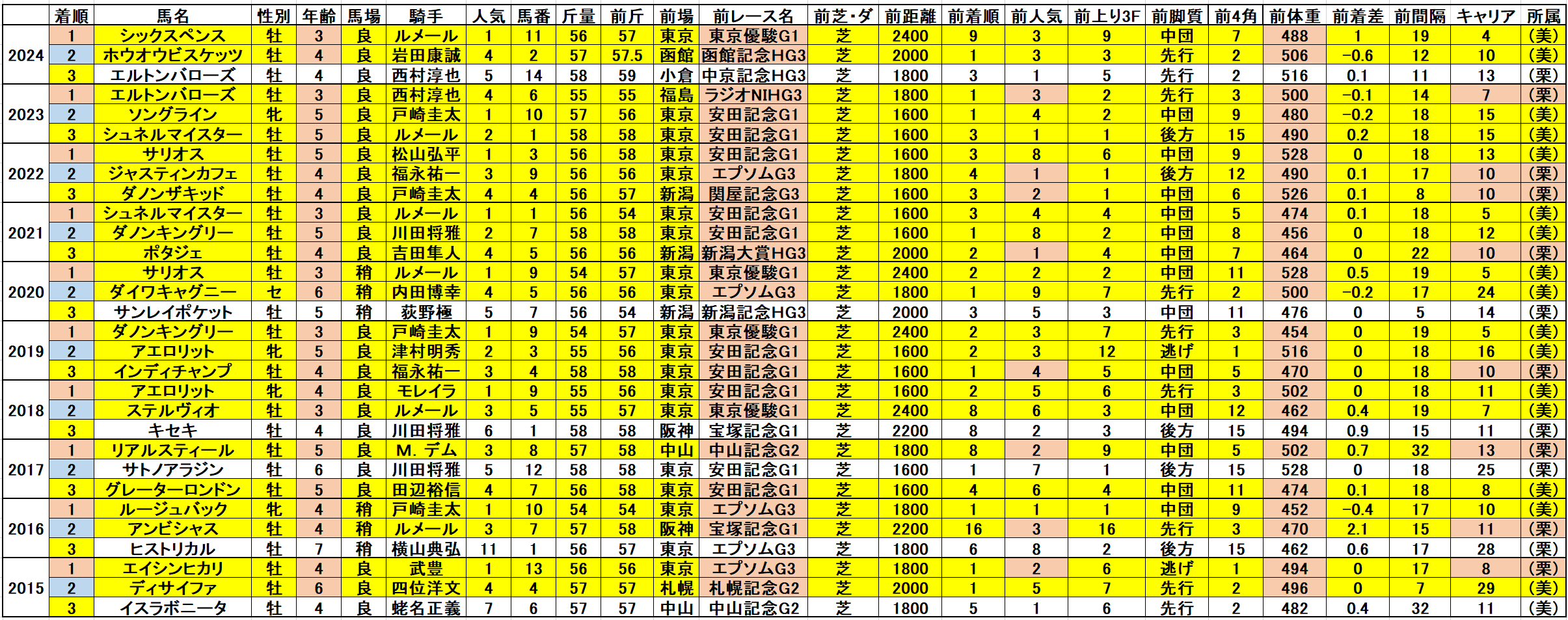 シリウスコルトとシックスペンス以外は昨年の2・3・5着馬で逃げ・先行勢の比率も昨年とあまり変わりがない。