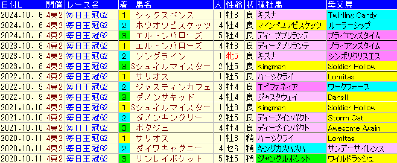 3年前までは母父ノーザンダンサー系が圧倒的に好成績だったが、近2年はそこまでではない。
