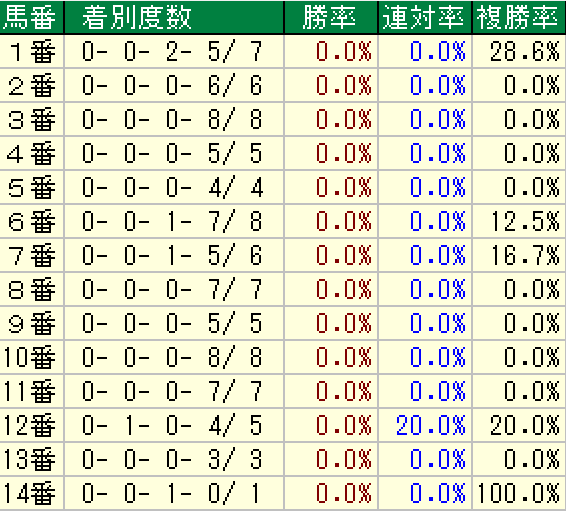 このレースにおいて極めて好走率が悪いデスデータを調べました。