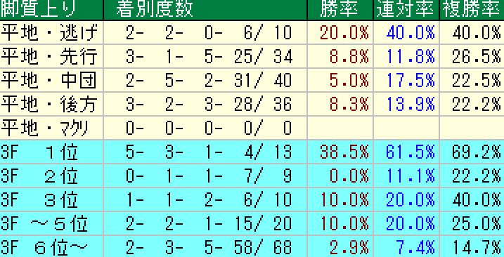 それではこれから脚質傾向・枠順傾向・血統傾向・消去法・デスデータの順で調べていきます。