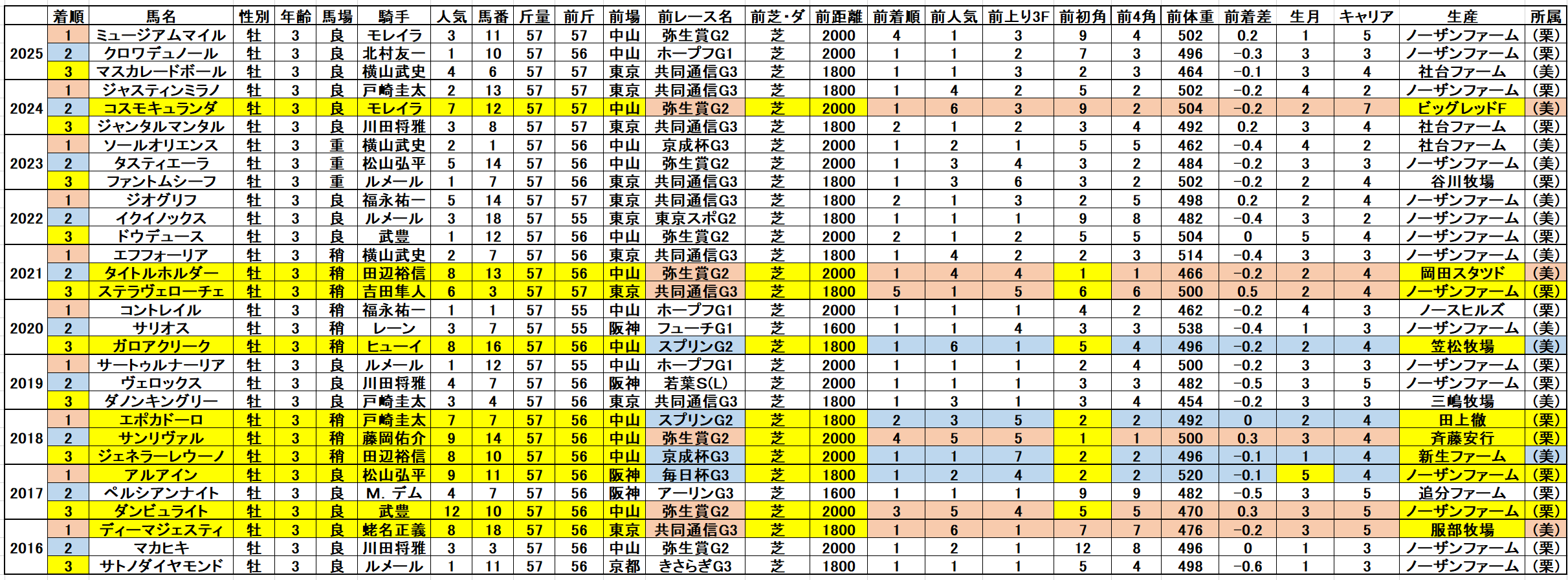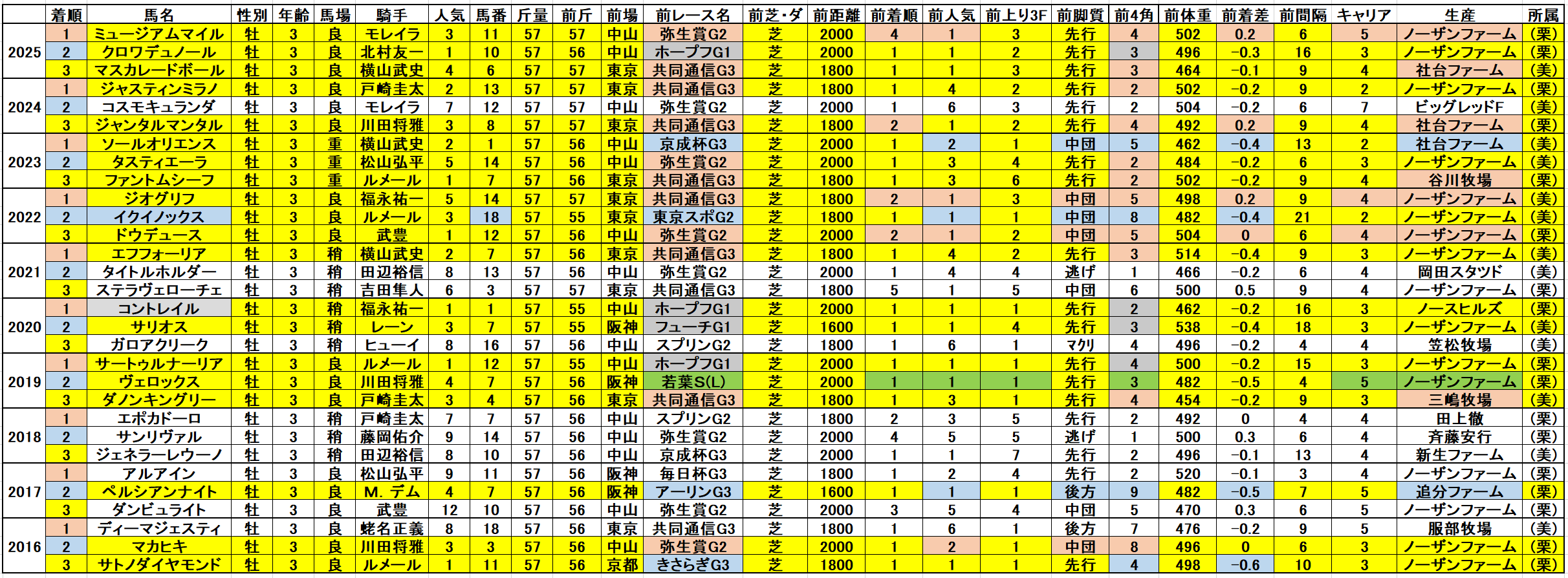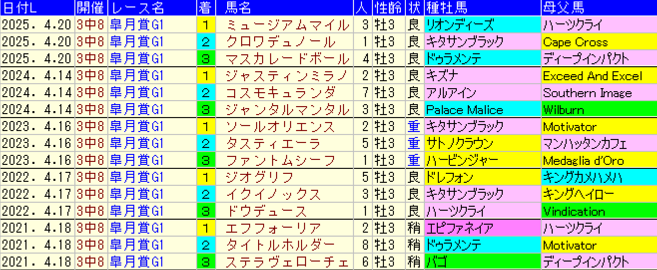 ・前走スプリングステークスで逃げ馬を除く初角5番手以内で4角4番手以内 且つ上り5位以内(1・0・1・1)複勝率66,6%