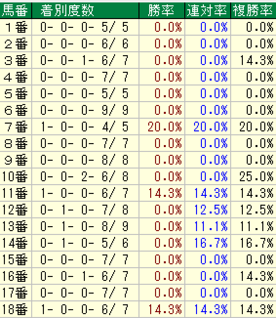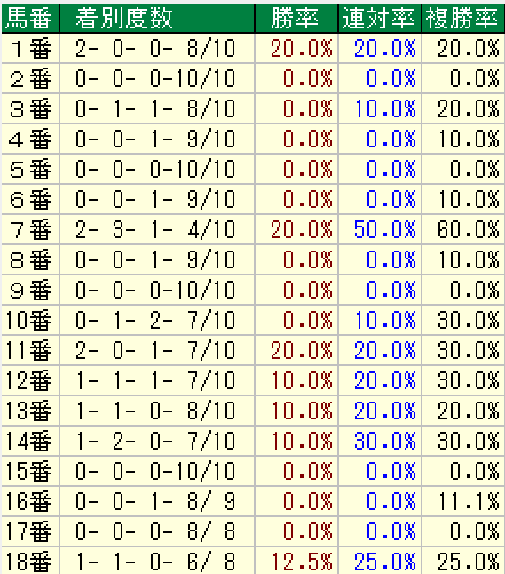 これを見ると7~14番ゲートの成績が良く見えます。