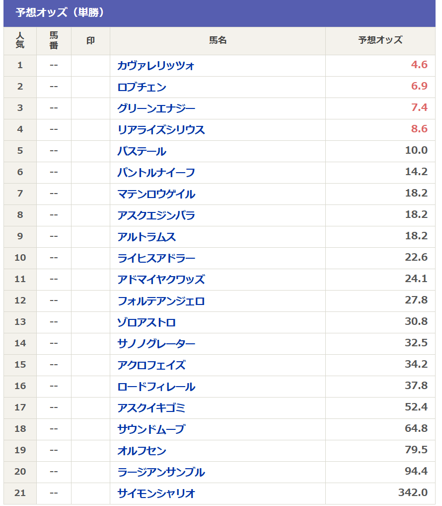 そして現在のnetkeibaさんの予想オッズは以下の通りです。