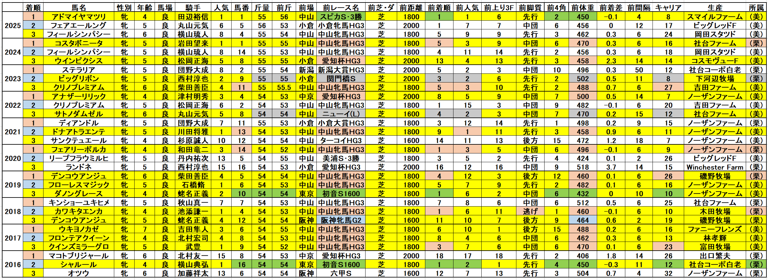 以下が2016年以降の新潟開催を除く9年分の脚質傾向です。