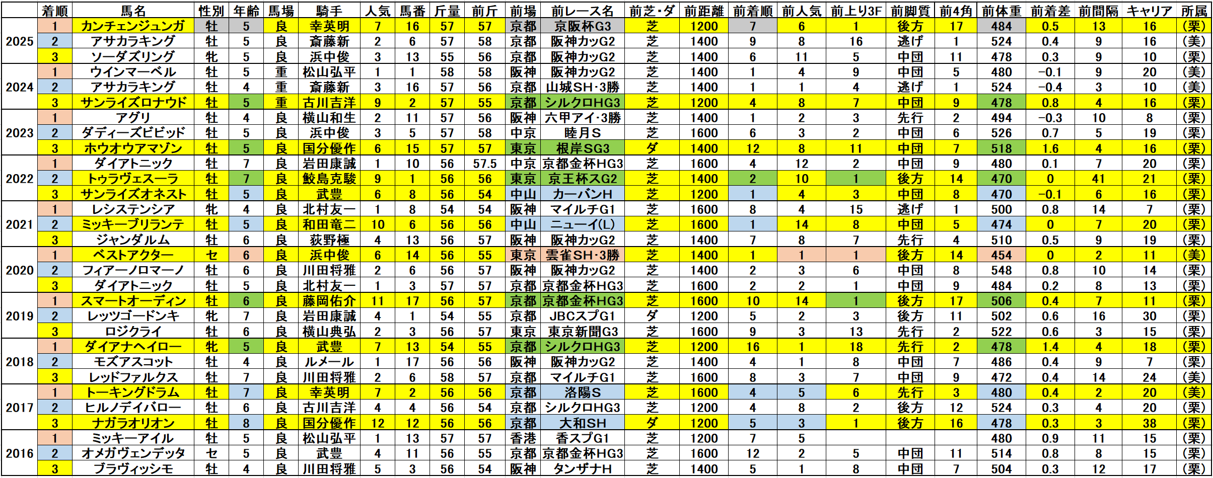 そういう意味ではスプリンターズステークスでも上り2位を記録しているカンチェンジュンガの脚は警戒したい。