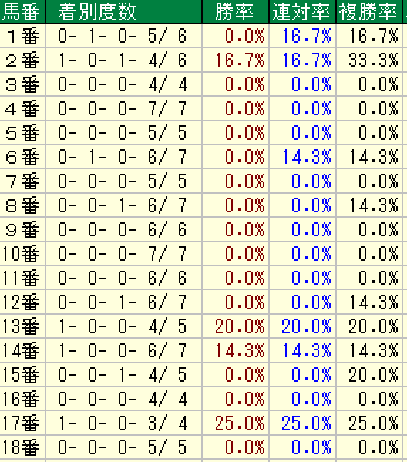 このレースにおいて極めて好走率が悪いデスデータを調べました。