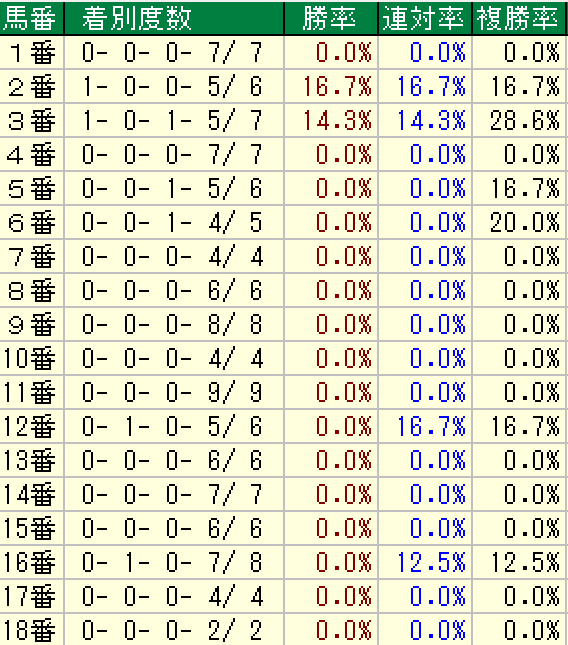 今度は6番人気以下限定の枠順傾向です。