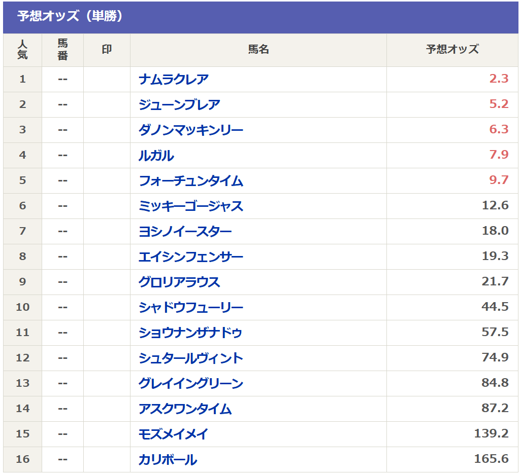 そして現在のnetkeibaさんの予想オッズは以下の通りです。
