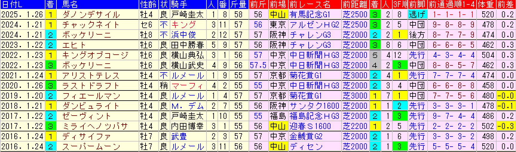 ➈ 前走G2出走馬は前走2番人気以内で3着以内 且つ 初角4角共に9番手以内