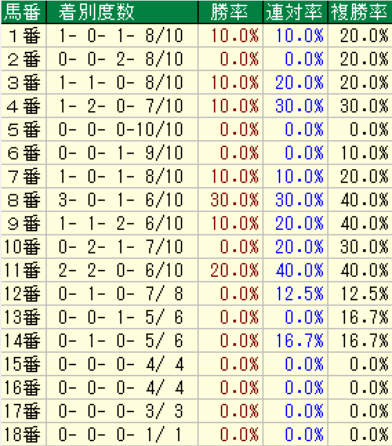 以下が過去10年の枠順傾向です。