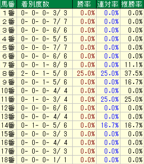 このレースにおいて極めて好走率が悪いデスデータを調べました。